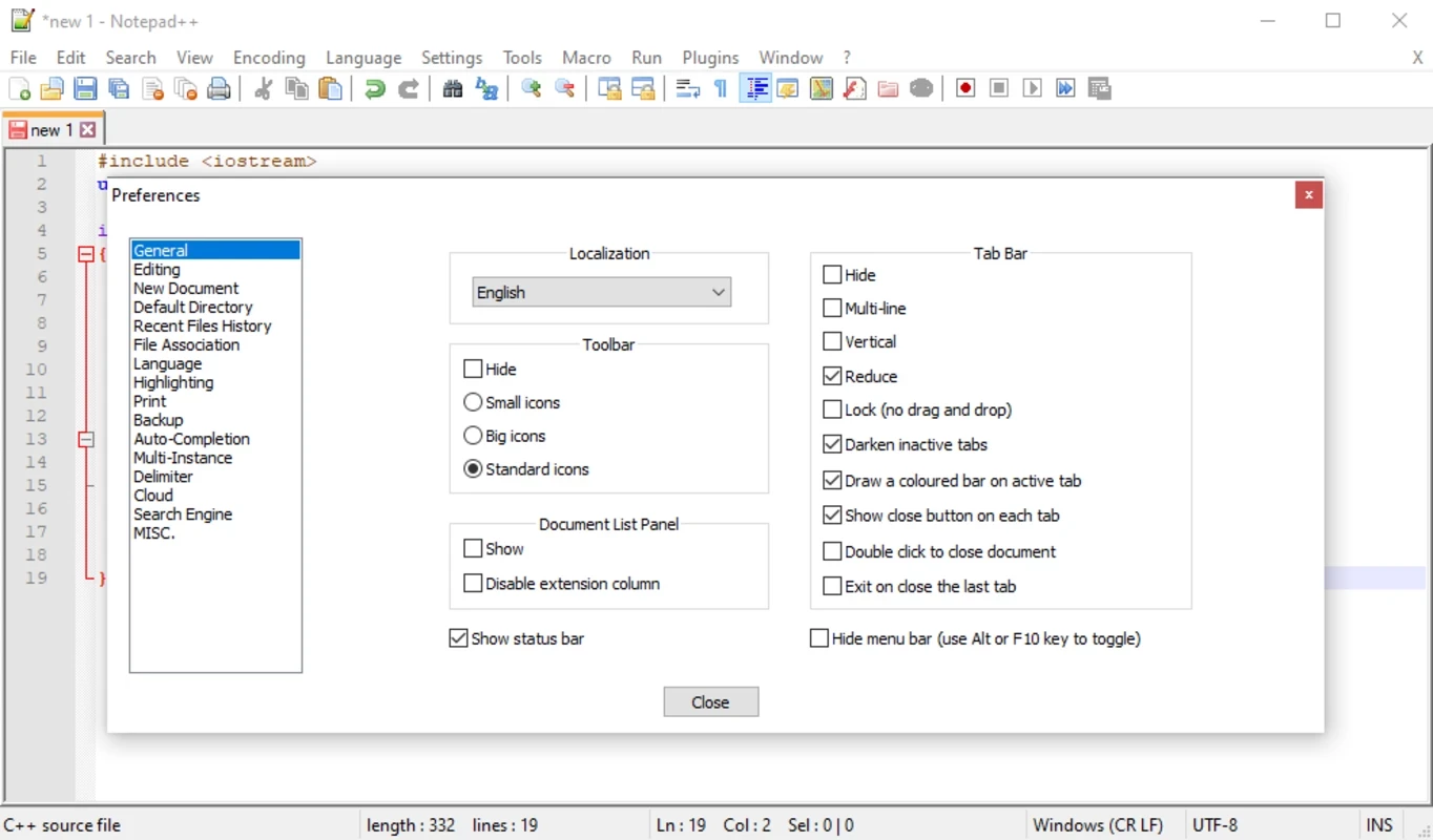 该工具支持多种编程语言的语法高亮显示,方便代码的阅读和组织。如果您不想像默认设置那样对所有选中文本进行高亮显示,可以前往“设置”>“首选项”>“搜索”>“高亮显示所有匹配项”,关闭该选项,然后手动高亮显示所需部分。如果语法高亮显示后文本仍显示为单一颜色,请确保文件扩展名和支持的语言已在“语言”菜单中设置。