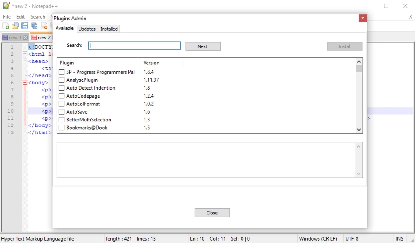 如果您正在管理文本文档并想编辑选定的部分,该应用提供了便捷的查找和替换功能。您只需点击“搜索”栏,然后选择“查找”或“替换”选项即可。此外,您还可以通过导航至“插件管理器”来增强应用功能,并安装所需的插件。