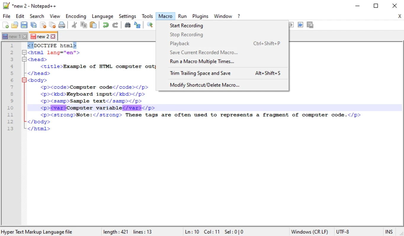 8. 也可以将文本保存为任何特定的文件格式,例如 .txt、.html、.php 等。